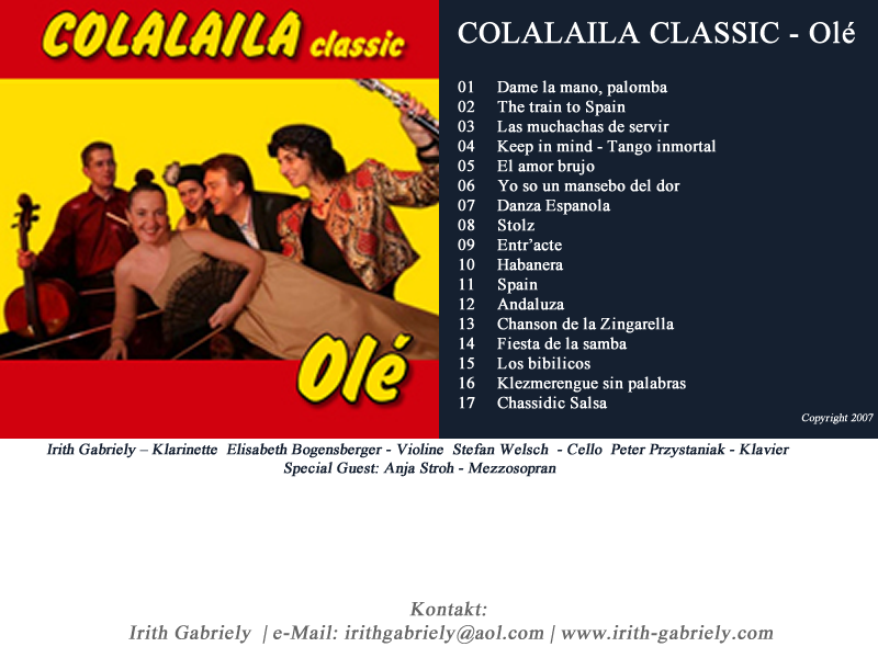 COLALAILA CLASSIC – Olé Irith Gabriely – Klarinette Elisabeth Bogensberger – Violine Stefan Welsch – Cello Peter Przystaniak – Klavier Special Guest: Anja Stroh – Mezzosopran zurück gva2021-09-29T16:36:09+02:00