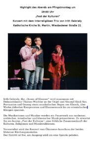 Konzert im Anschluss an das ökumenischen Gottesdienst zum Pfingstmontag, im Duo mit Dekanatskantor Organist Thomas Wächter.