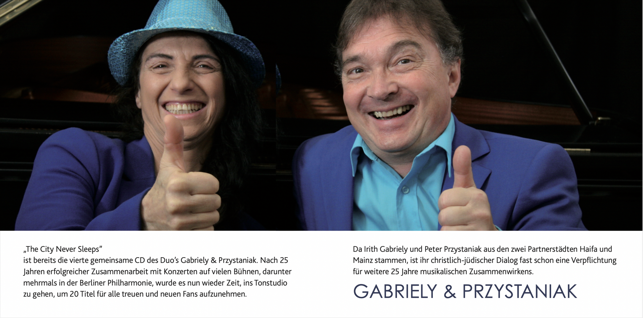 ist bereits die vierte gemeinsame CD des Duo’s Gabriely & Przystaniak. Nach 25 Jahren erfolgreicher Zusammenarbeit mit Konzerten auf vielen Bühnen, darunter mehrmals in der Berliner Philharmonie, wurde es nun wieder Zeit, ins Tonstudio zu gehen, um 20 Titel für alle treuen und neuen Fans aufzunehmen.